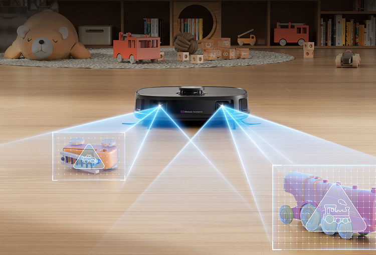 Dzięki zaawansowanemu wykrywaniu przeszkód DuoDetect AI™ 3D, J12 Ultra inteligentnie wykrywa meble i przeszkody według rodzaju.