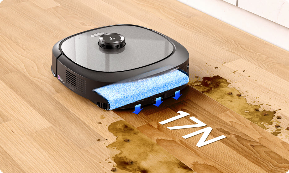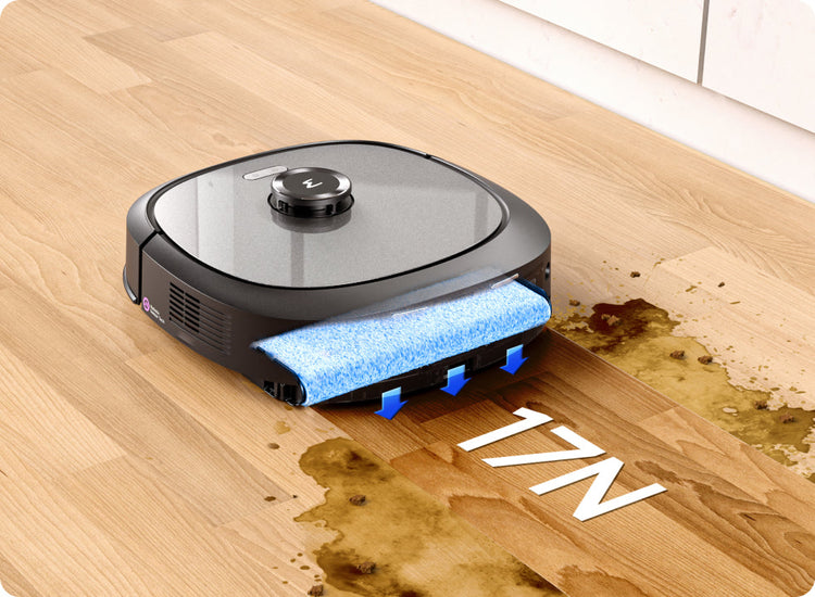 Szoruje podłogi z mocnym naciskiem 17 N w dół, aby dokładnie usunąć uporczywy brud i rozlane ciecze.