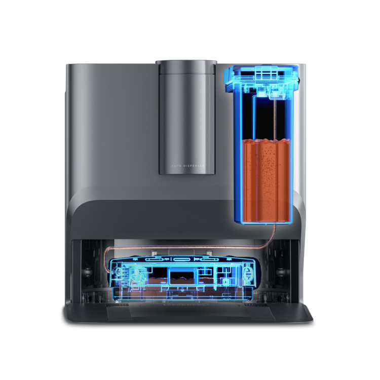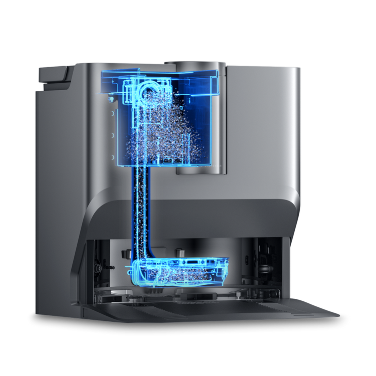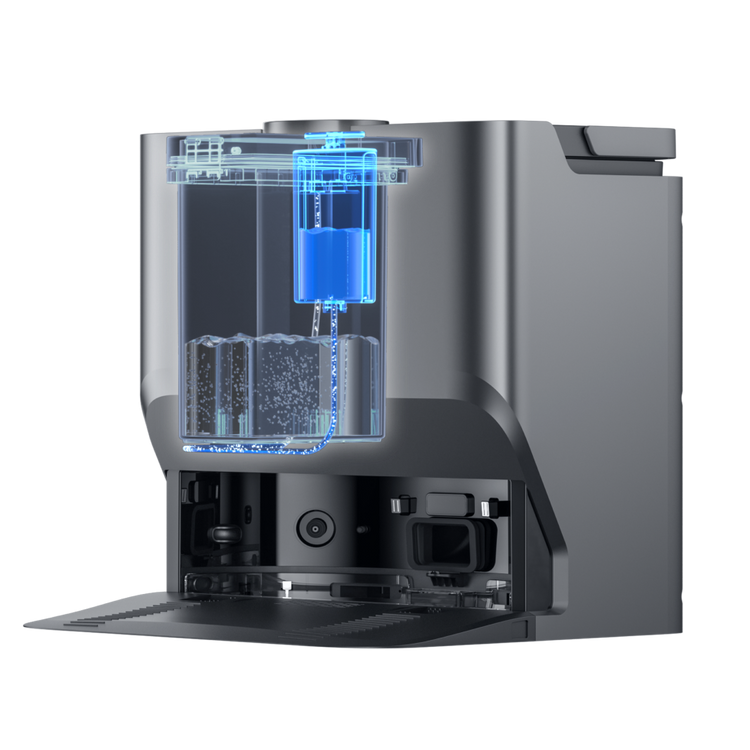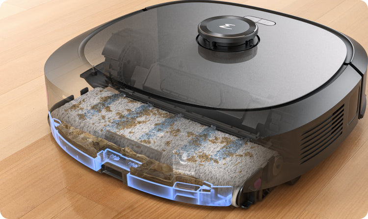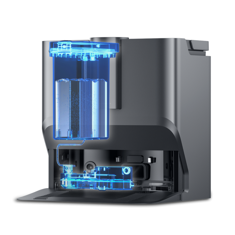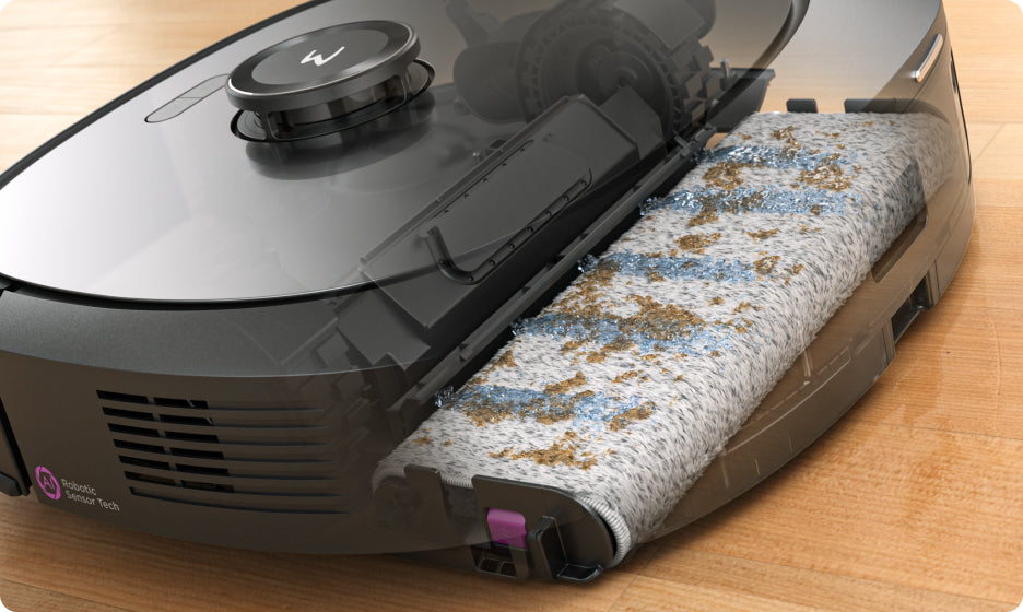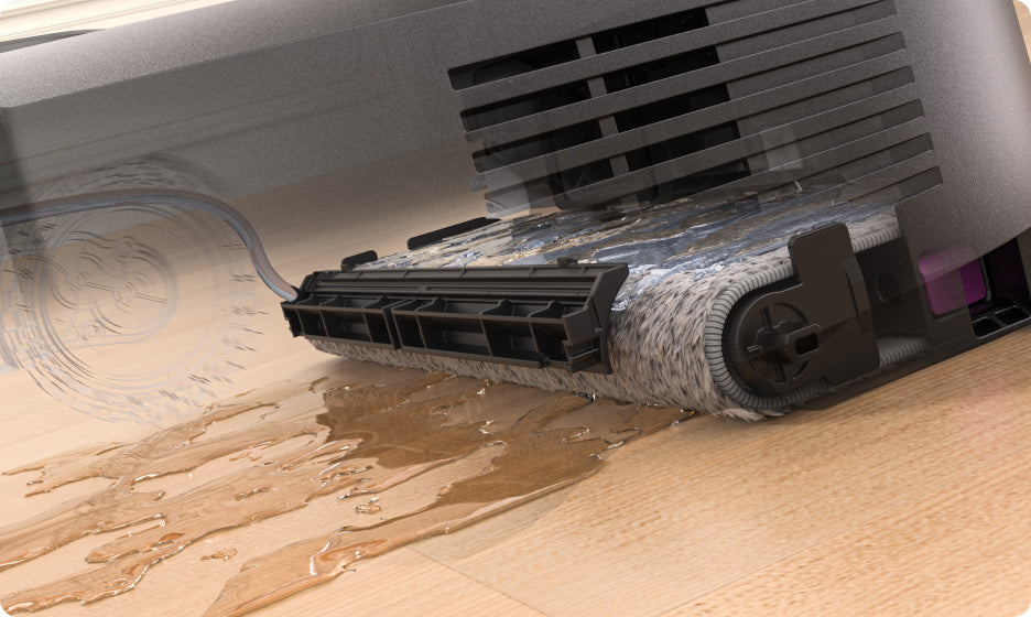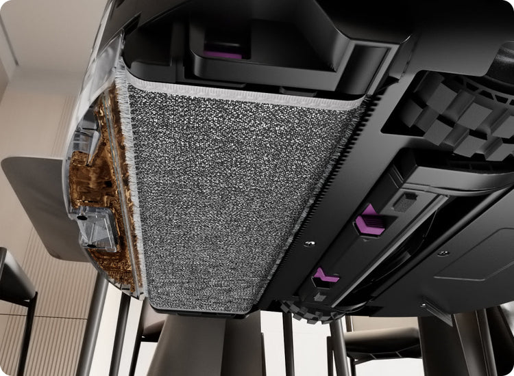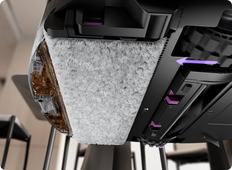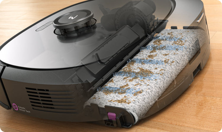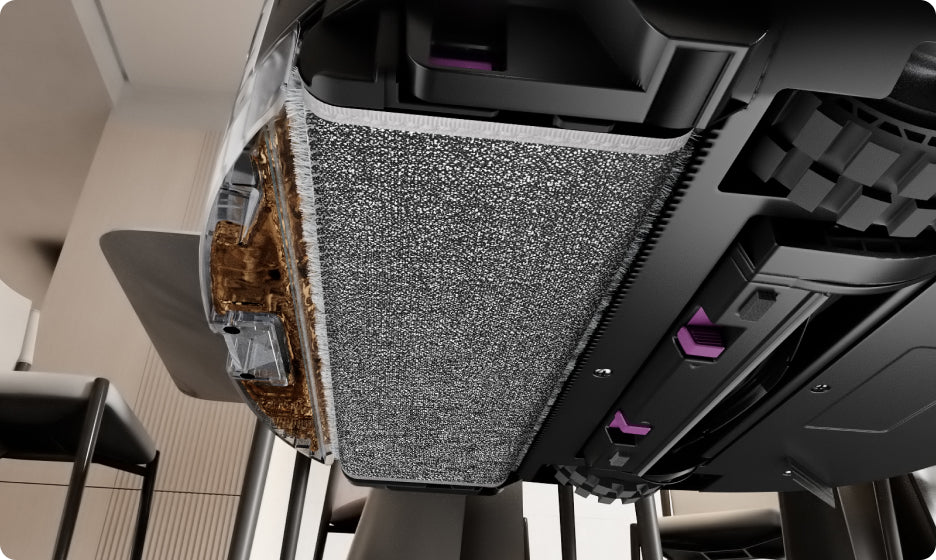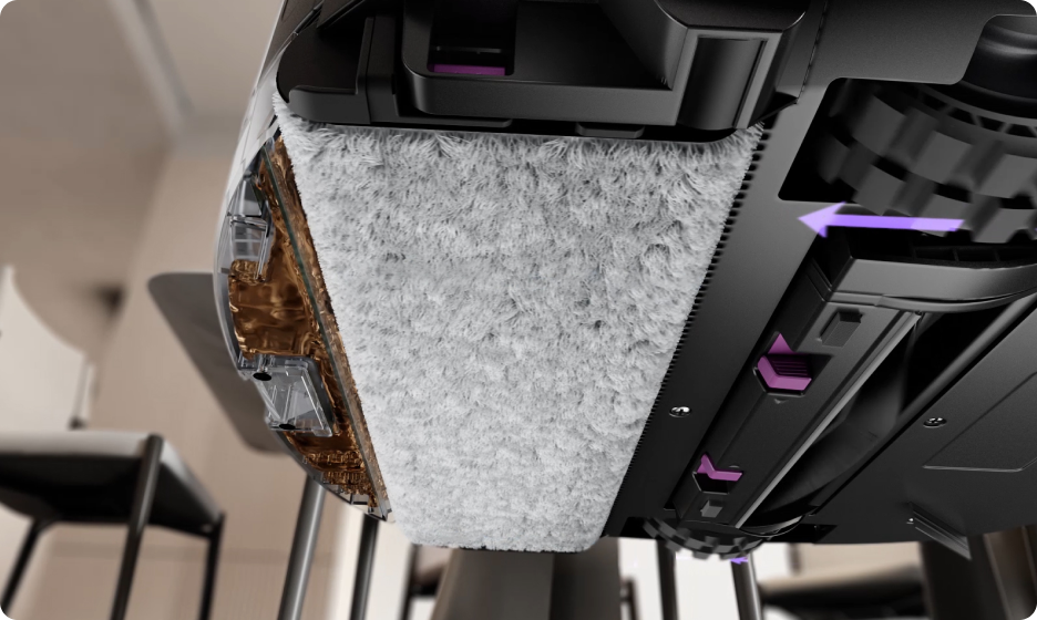 Całkowicie nowa konstrukcja cyklicznego mopa taśmowego jest skoordynowana ze zintegrowanym z robotem systemem podwójnego zbiornika na wodę, który umożliwia ciągłe płukanie mopa, usuwanie brudnej wody i dokładne szorowanie podłóg, aby zapewnić nieskazitelną czystość.