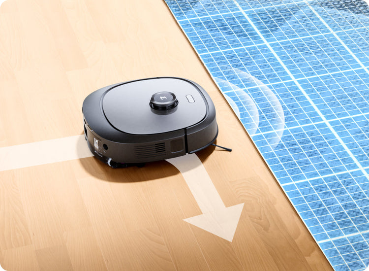 Ciesz się suchymi dywanami dzięki ultradźwiękowemu wykrywaniu dywanów i inteligentnej regulacji mopa. Kiedy J20 uderza w podłogę wyłożoną wykładziną, przełącza mop na stronę niechłonną, aby zapewnić jej suchość.