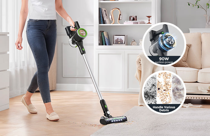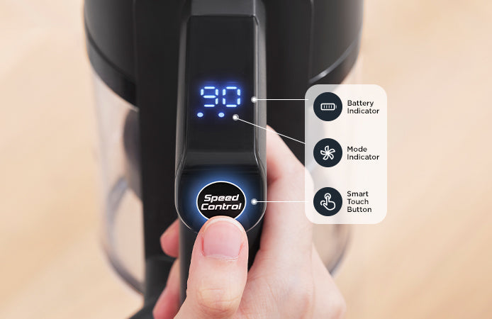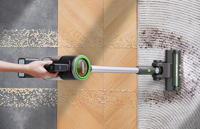 Czyść pod kontrolą za pomocą bezprzewodowego odkurzacza sztyftowego! Ulepszony inteligentny wyświetlacz OLED pokazuje tryb ssania i moc baterii w czasie rzeczywistym.