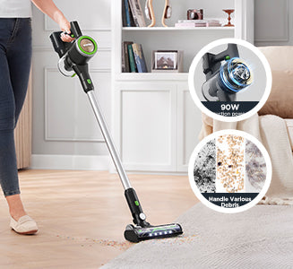 Mocny, bezszczotkowy silnik cyfrowy wytwarza moc ssania 90 W i moc ssania do 14 000 Pa*, usprawniając wszelkiego rodzaju prace sprzątające aż do najmniejszej plamki kurzu.