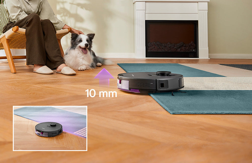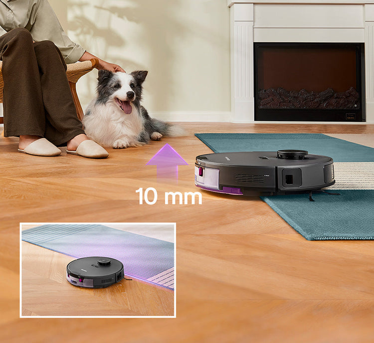 Utrzymaj swoje dywany w czystości i suchości! Mop automatycznie podnosi się o 10 mm po wykryciu dywanu, zapobiegając wilgoci i nieprzyjemnym zapachom.